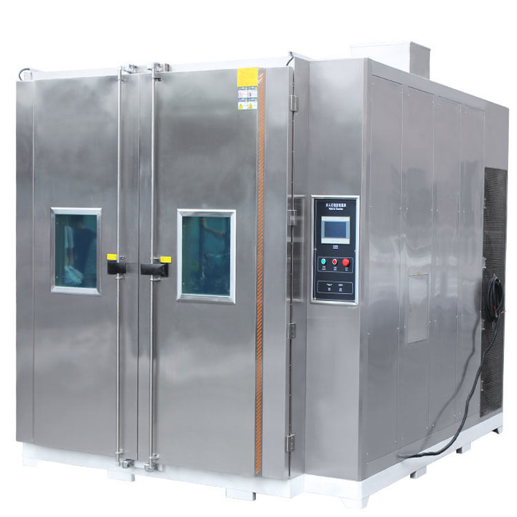 เครื่องทดสอบอุณหภูมิและความชุ่มชื้นคงที่ประกอบด้วย แผ่นควบคุม แผ่นไฟฟ้า เครื่องเป่าจานชุ่มชื้น เครื่องทําความร้อน เครื่องปรับความชุ่มชื้น เครื่องตู้เย็นมันให้สํารองขนาดใหญ่เพื่อทดสอบอุณหภูมิและความชื้นสําหรับชิ้นส่วนขนาดใหญ่การทดสอบผลิตภัณฑ์ครึ่งเสร็จ
