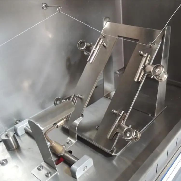 45 องศา เครื่องทดสอบความเผาไหม้ ใช้ในการกําหนดลักษณะการเผาไหม้ของผ้าผ้าภายใต้สภาพที่ควบคุมวิธีการทดสอบนี้ครอบคลุมการประเมินการทดสอบความเผาไหม้ของเนื้อผ้าเมื่อมันถึงผู้บริโภคสําหรับหรือจากเสื้อผ้าอื่น ๆ นอกจากเสื้อนอนเด็กหรือเสื้อผ้าป้องกัน.