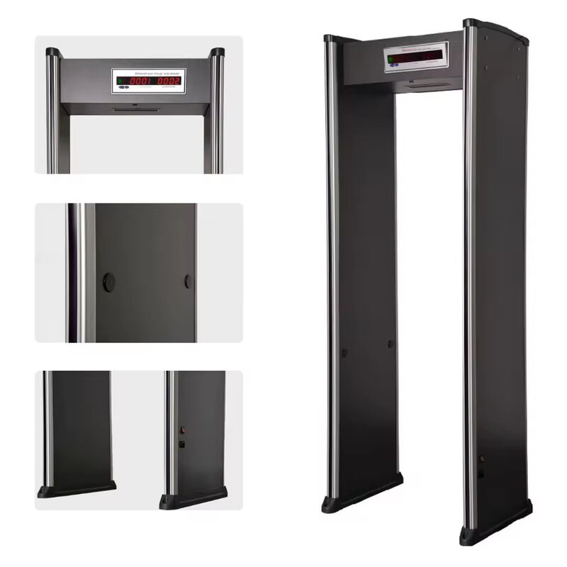 The Model 200 is an economical and practical security detection gate designed in a passable door format. High-brightness LED alarm indicator lights are installed on both side columns, constructed from durable aluminum alloy that directly displays alarm positions with elegant styling. The system establishes an electromagnetic field within the door frame that triggers alarms when individuals carrying metal items pass through.